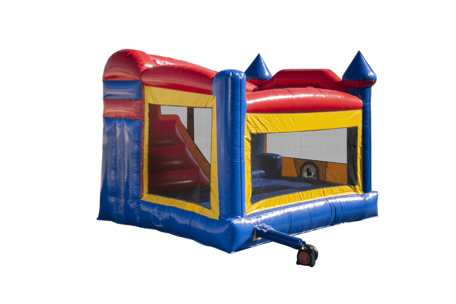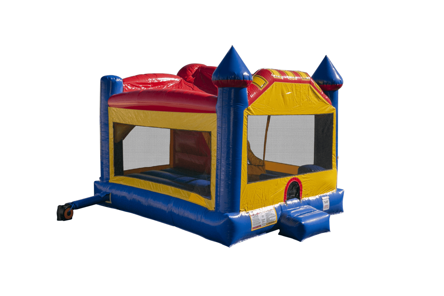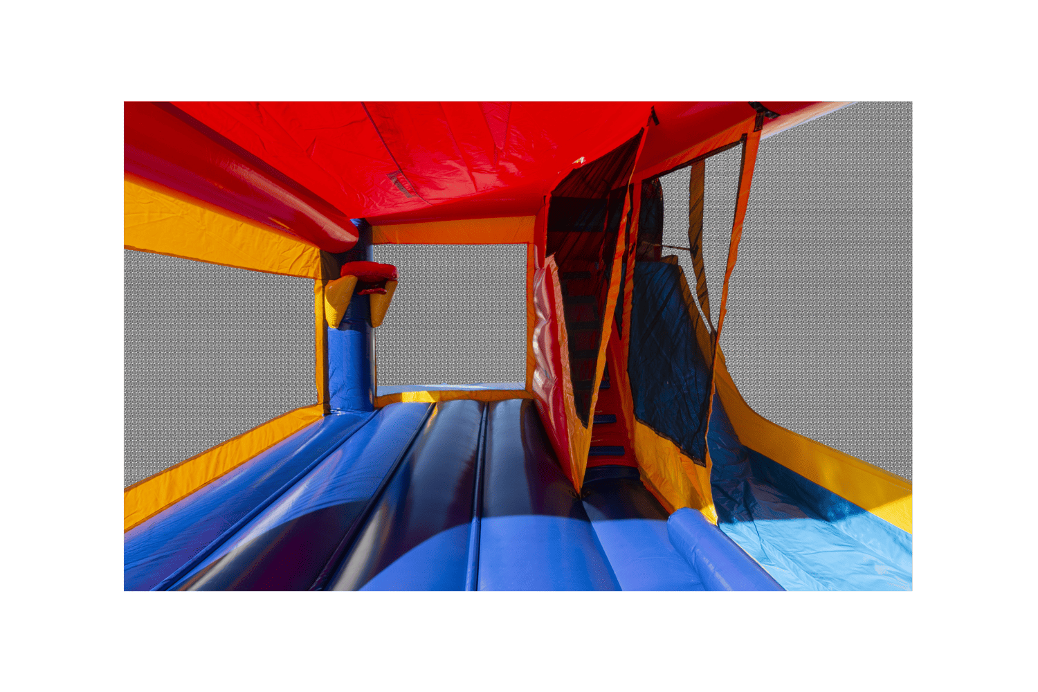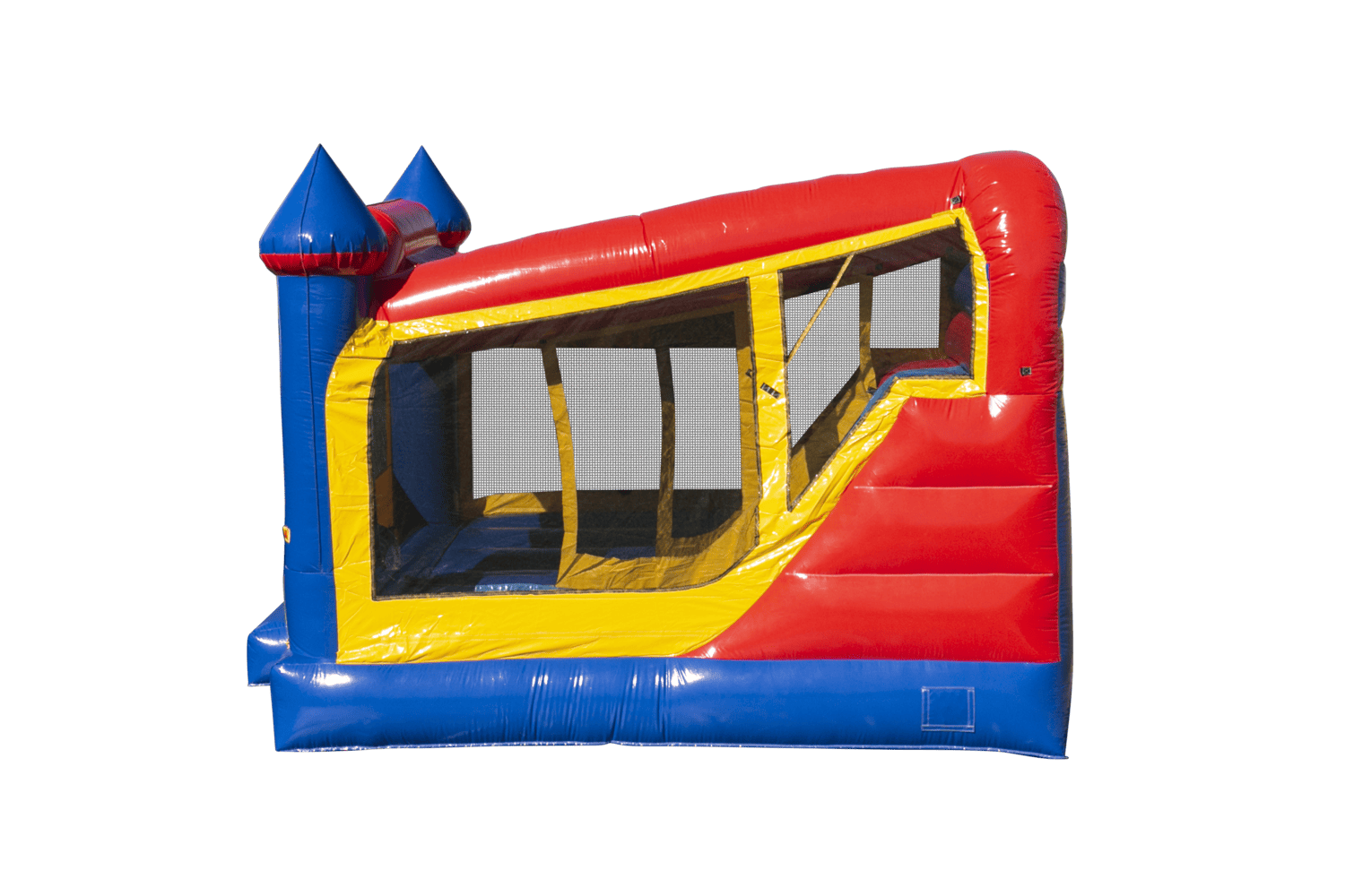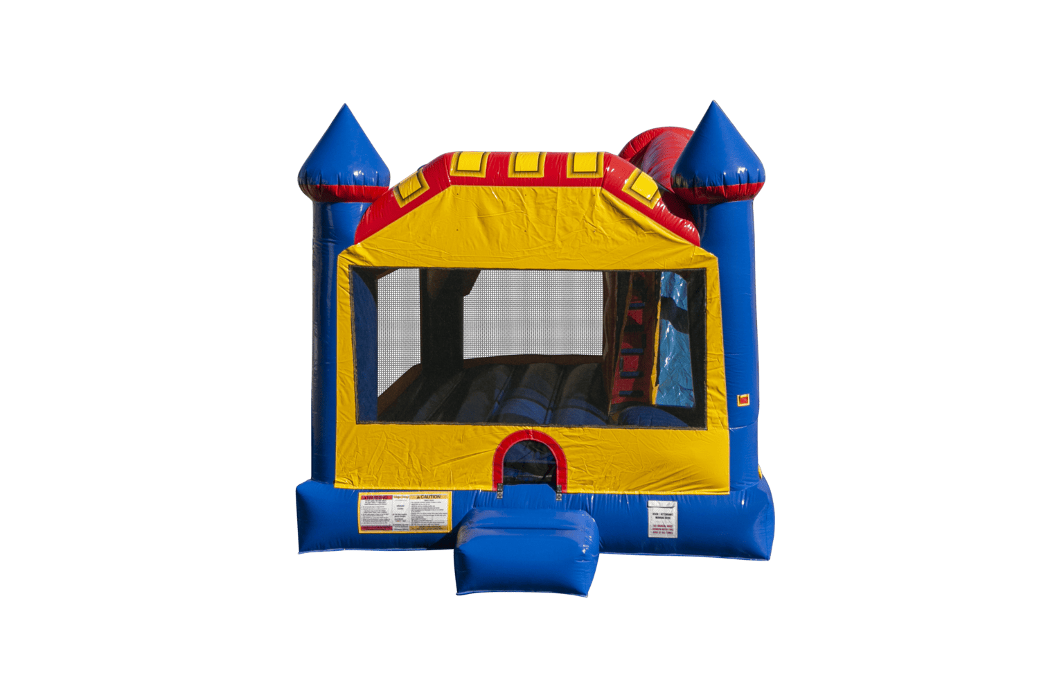 This 4-feature challenge is jam-packed with fun, offering a generous area of jumping area, basketball hoop, climb and slide. Bright and lively this Ninja Jump unit offers more fun per square foot than any other! These units are built Ninja Jump Tough! Super durability and safety are built right into each and every one from materials to workmanship and quality control. Each attraction is approved for both indoor and outdoor use, meets ASTM standards and comes standard with Ninja Jump’s 15 oz. lite n’ strong™ fire resistant viny. High-visibility mesh around all sides allows spectators to view easily.