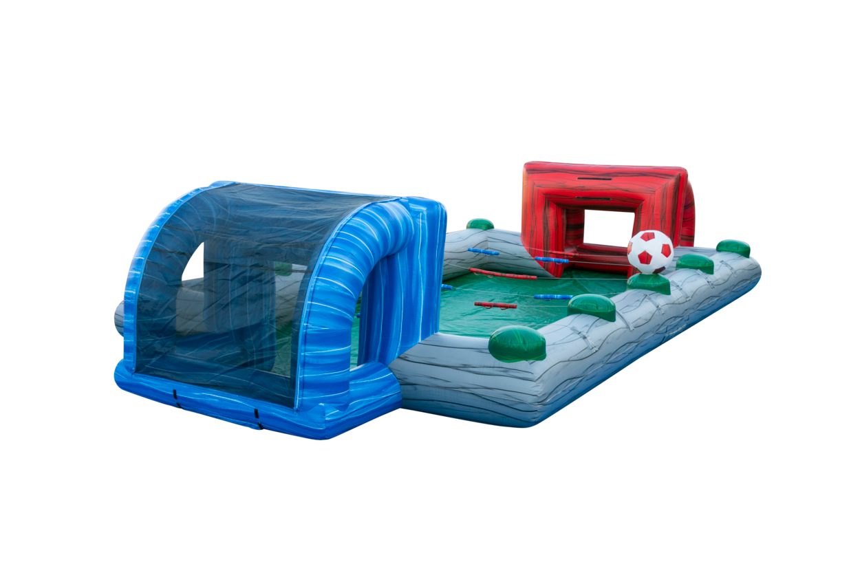 Take foosball to the next level with this Foosball with Rope 2.0, an inflatable foosball game which will have participants battling for the most scored goals and will provide hours of fun. Dimensions: 45’x20’x7′